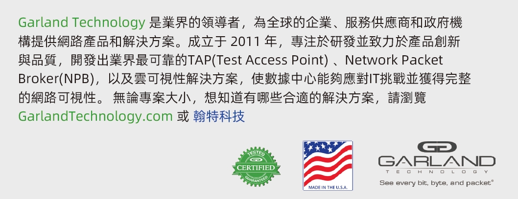 Garland Technology 可以幫助您成功實現Zero Trust體系的建立和運作。 我們完整的Network TAP、NPB、bypass技術和雲環境可視性解決方案產品組合可以協助簡化您的網路安全升級任務。